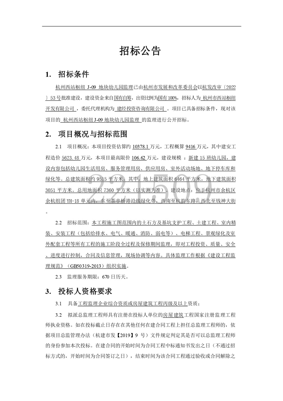 杭州西站樞紐 J-09 地塊幼兒園監理招標公告