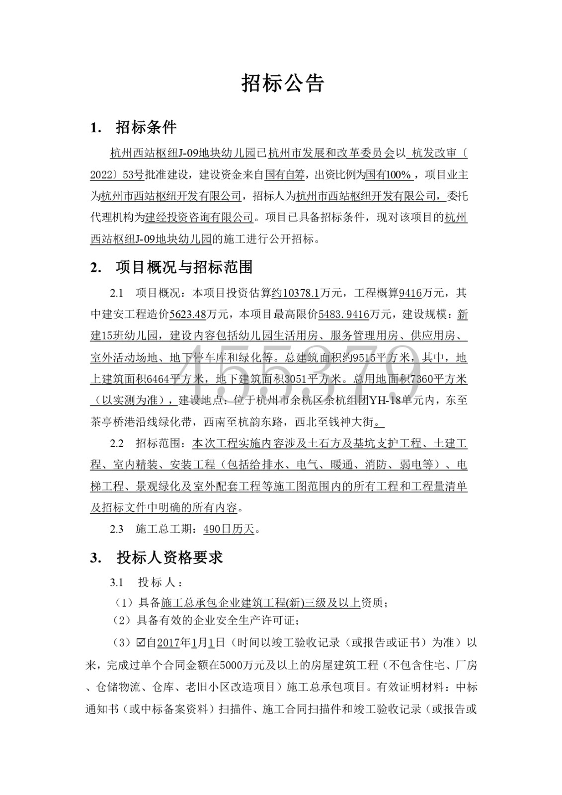 杭州西站樞紐 J-09 地塊幼兒園監(jiān)理招標(biāo)公告