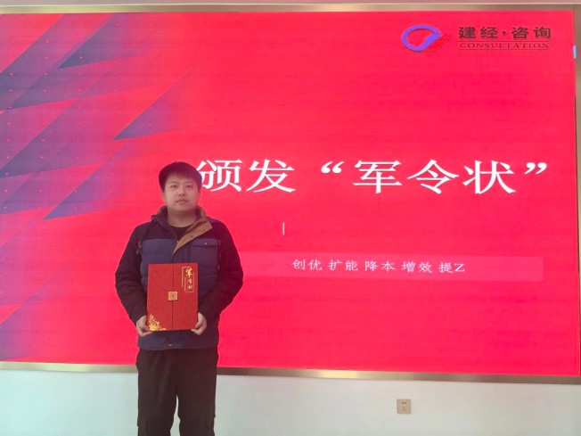 各部門負責人依次上臺,從朱靈增手中鄭重地接過軍令狀,并進行宣誓,表達為完成目標而全力以赴的決心。