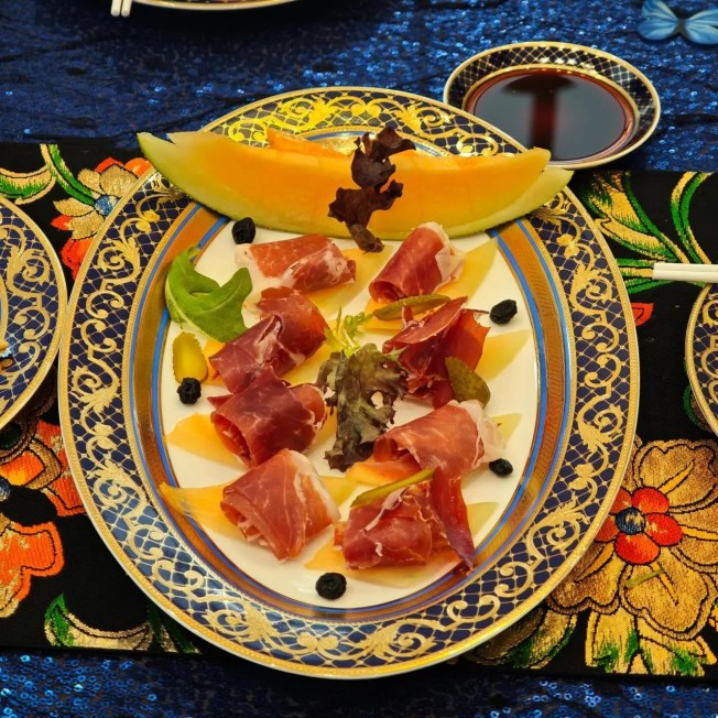 伊比利亞火腿個人意見可以參考鵝肝,將火腿與蜜瓜用叉子固定在一起,方便食用
