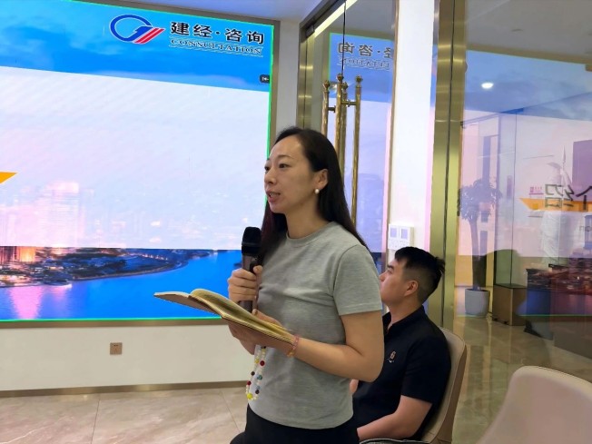 簡小玉以業務圖譜為切入點,用富有感染力的語言娓娓道來。她從國際業務部、投融資&戰略研究部等核心業務單元,到建筑設計、全過程投資控制、招標合約管理等專業領域,再到實施過程項目管理及法律咨詢服務,系統勾勒出公司多元化業務版圖與深厚行業積淀。在介紹特色服務時,她著重闡釋三大平臺賦能、全過程法律咨詢服務、設計優化咨詢等創新模式,生動展現了建經咨詢在行業變革中如何以專業厚度拓展服務廣度,讓學員們對公司的業務矩陣和市場站位有了全景式認知。