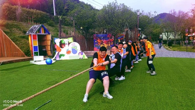 凝聚力強(qiáng)化,從“競(jìng)賽對(duì)手”到“背靠背戰(zhàn)友”的情感躍遷。徒步競(jìng)賽時(shí),總能看到先頭隊(duì)伍主動(dòng)折返協(xié)助體力不支的隊(duì)員;露營(yíng)拓展中,背夾球項(xiàng)目的“人球分離”鬧劇、拔河比賽時(shí)全員憋紅的笑臉與沙啞的吶喊,讓競(jìng)爭(zhēng)氛圍中始終流淌著“不拋棄、不放棄”的溫情。這種從“競(jìng)技對(duì)抗”到“共生共榮”的轉(zhuǎn)變,讓團(tuán)隊(duì)凝聚力有了觸手可及的溫度。
