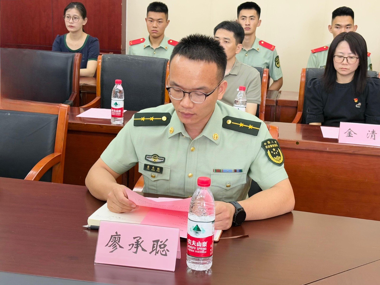 上圖為:官兵代表發(fā)言