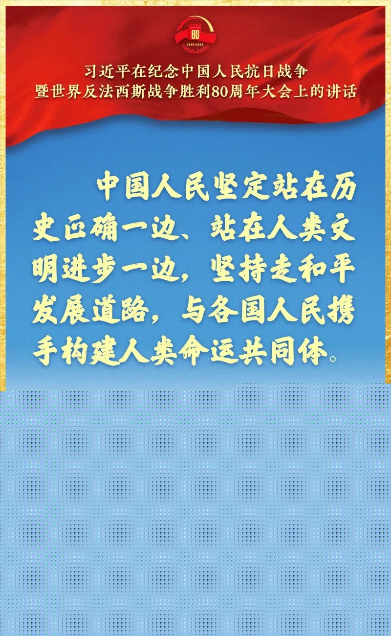 上圖為:中國國家主席習近平在紀念中國人民抗日戰爭暨世界反法西斯戰爭勝利80周年大會上的講話