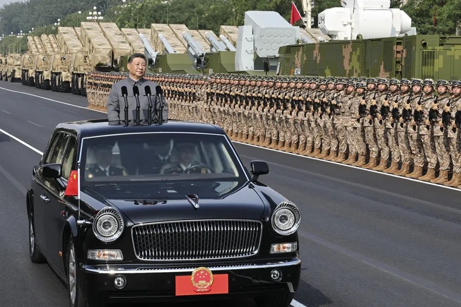 戰旗獵獵,鐵流滾滾。裝備方隊按陸上作戰群、海上作戰群、防空反導群、信息作戰群、無人作戰群、后裝保障群、戰略打擊群的編組,隆隆駛來接受檢閱。新型坦克、無人智能裝備、網電作戰系統、高超聲速武器、防空反導裝備、戰略導彈等先進裝備依次亮相——從抗戰時期的土槍土炮,到如今列陣的新型作戰力量,國產現役主戰裝備與戰略重器在天安門城樓前逐一駛過,既展現了中國堅決捍衛國家主權、安全、發展利益的鋼鐵意志,也彰顯了維護世界和平的強大實力。