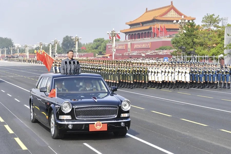 戰鷹呼嘯,振翅長空。預警指揮機、特種機、運輸機、轟炸機、加受油機、殲擊機、艦載機等空中梯隊,依次低空飛過天安門廣場。受閱的預警偵察、遠程打擊、制空作戰、戰略投送、支援保障等機型,成體系展現了中國空軍快速提升的空中作戰能力。