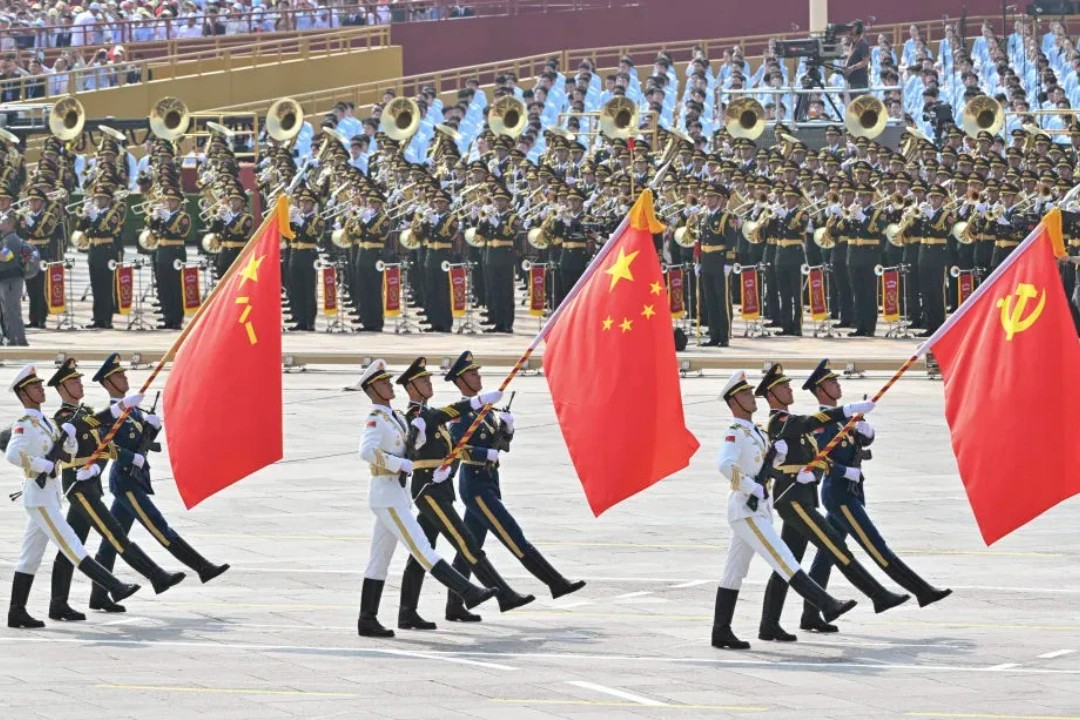 緊接著,徒步方隊邁著整齊有力的步伐,依次走過天安門廣場。儀仗方隊高擎黨旗、國旗、軍旗走在最前列,隊員們身姿挺拔、步伐鏗鏘,盡顯人民軍隊的威武英姿——中國共產黨領導的人民軍隊,永遠是國家的捍衛者、社會主義的捍衛者、人民利益的捍衛者。