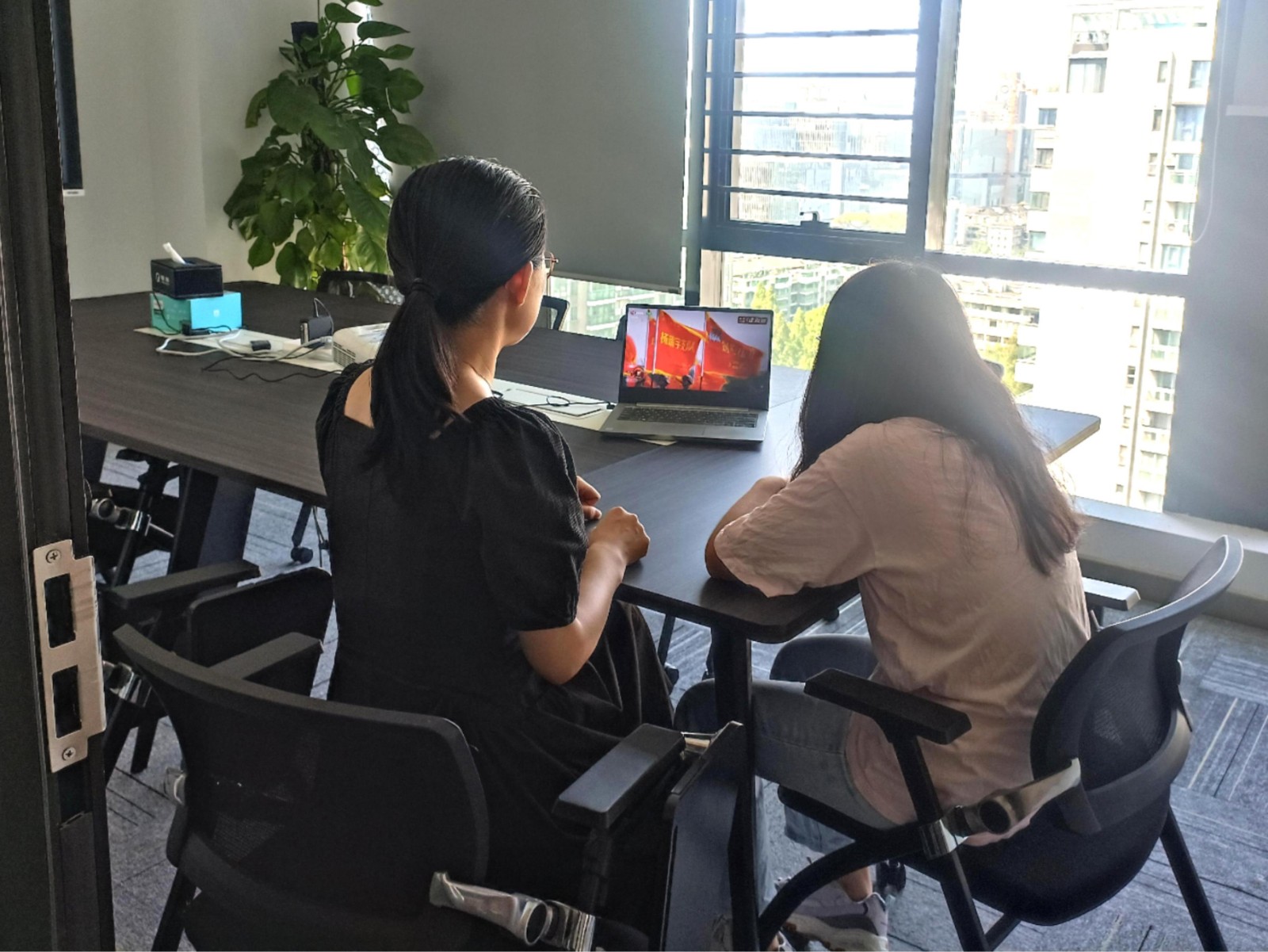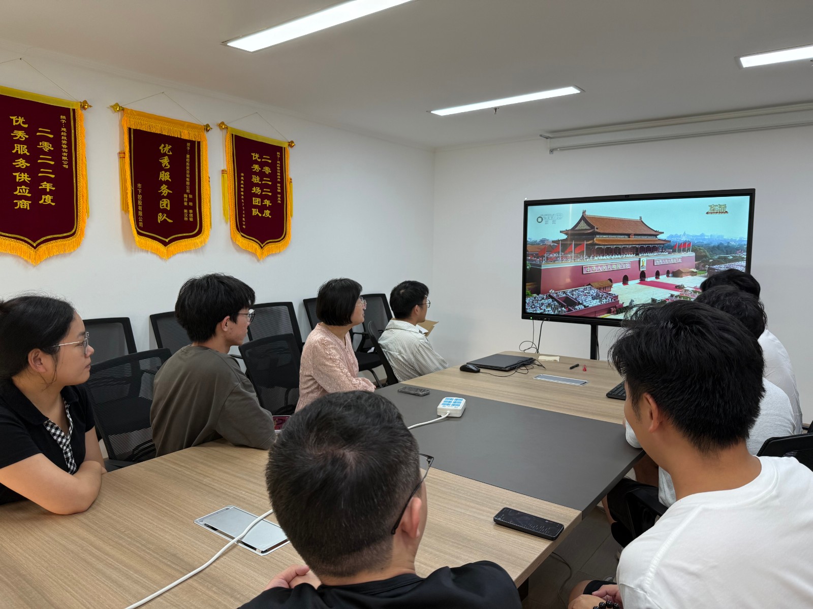 上圖為:建經咨詢全體員工觀看中國人民抗日戰爭暨世界反法西斯戰爭勝利80周年大會