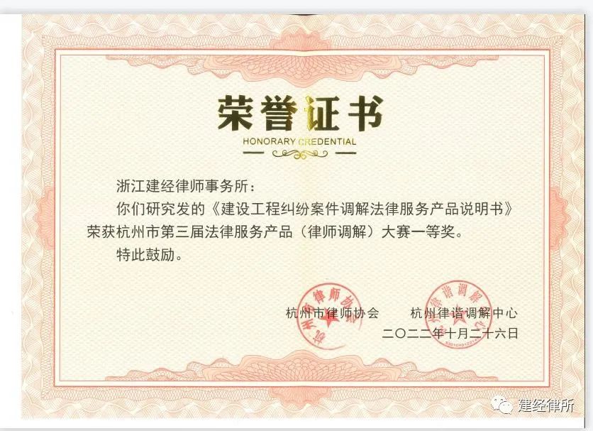 本次律所參賽的作品是《建設工程糾紛案件調解機制法律服務產品》,從服務產品的孕育、出生到落地,全方位介紹了推出該法律服務產品的初心和使命,結合建經的專業特色和技術力量,為建設工程糾紛案件的爭議解決創造調解平臺,運用項目管理之理念解決現實痛點及找尋雙方平衡點,有效發揮律師在定紛止爭上的優勢,將爭議消解在建設工程項目推進過程中,得到了市場及評審專家的高度認可及肯定。