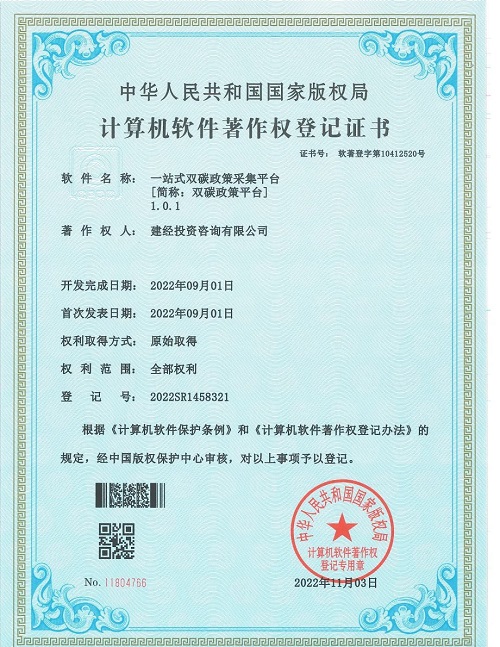 近日,建經雙碳研究中心與浙江數字建經強強合作,聯合開發雙碳數智平臺——云碳Arch和一站式雙碳政策采集平臺,并取得相應軟著。兩者均為建經自主研發,將在日后的應用中成為數字化助力減碳的強力引擎。這是建經在雙碳領域耕耘和積累的碩果,也顯示了建經引領咨詢行業數字化和生態化的決心和使命感。